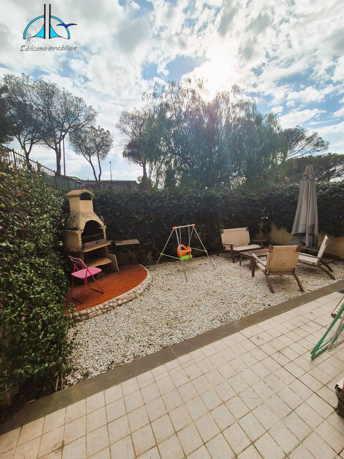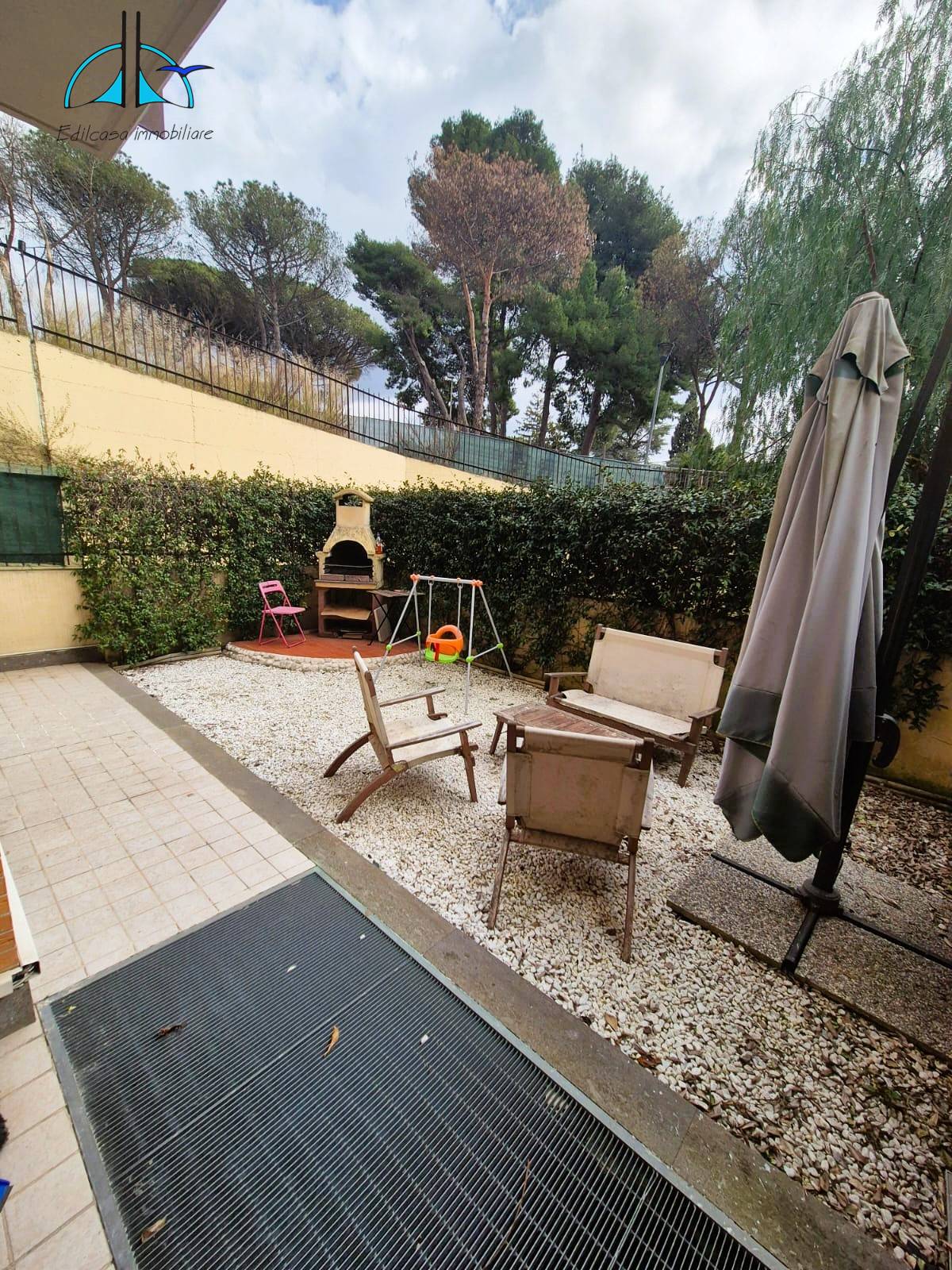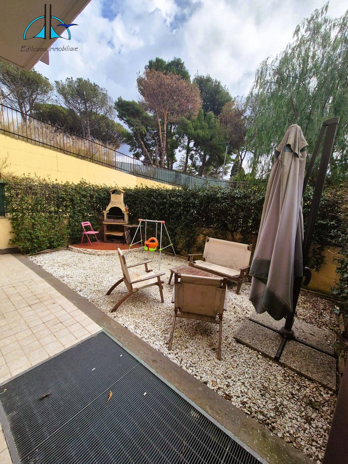 L' immobile è composto da: ingresso, luminoso soggiorno con angolo cottura dal quale si accede al giardino privato, disimpegno, camera matrimoniale con parquet e bagno con doccia.