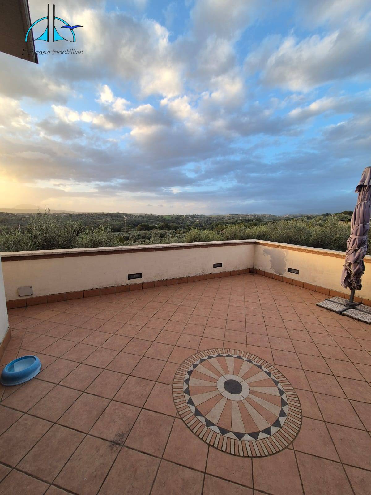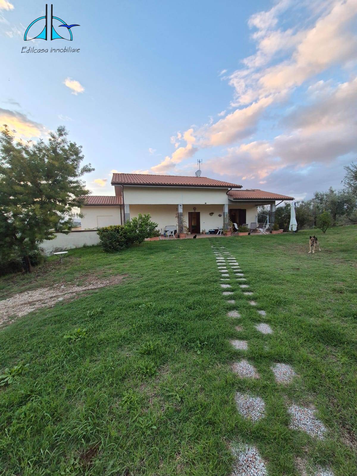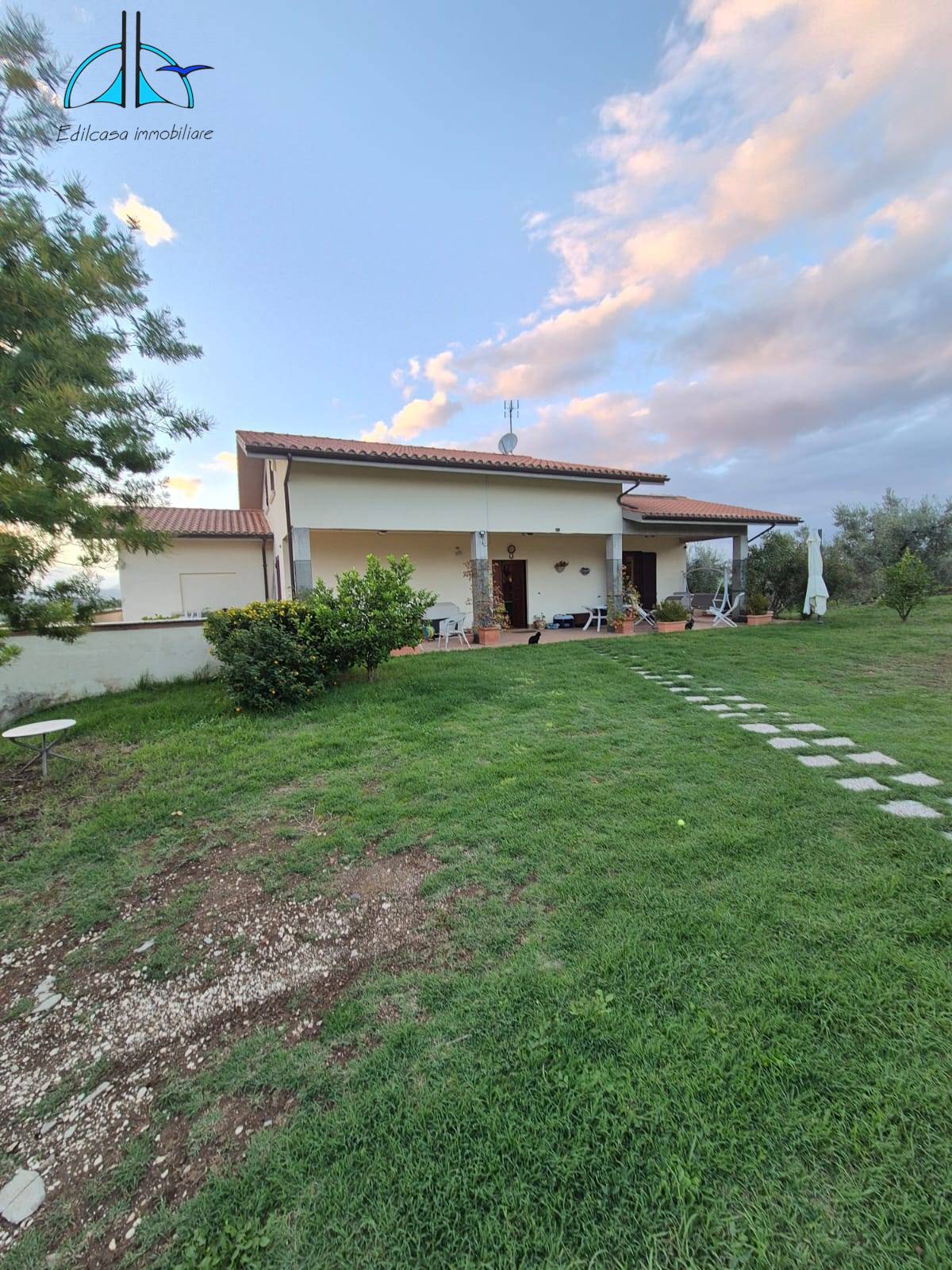 L'immobile circondato da uliveti ed alberi da frutto è composto al piano terra da: ampio e luminoso salone con affaccio su giardino, cucina abitabile, due camere grandi, bagno con vasca idromassaggio e doccia oltre al terrazzo panoramico che circonda quasi tutto il piano.