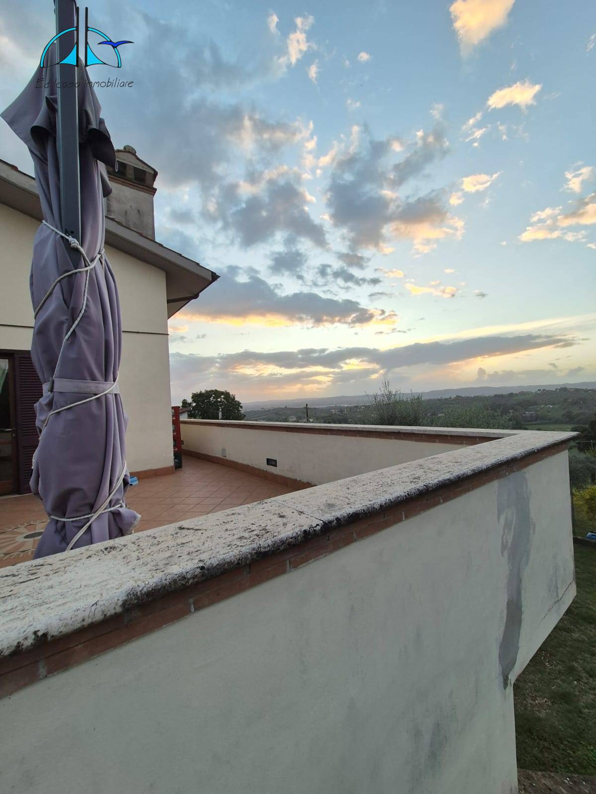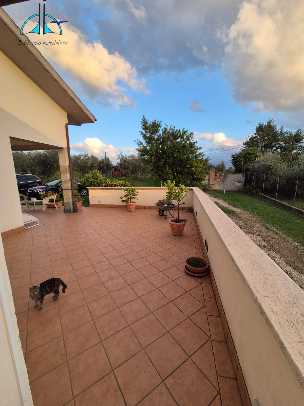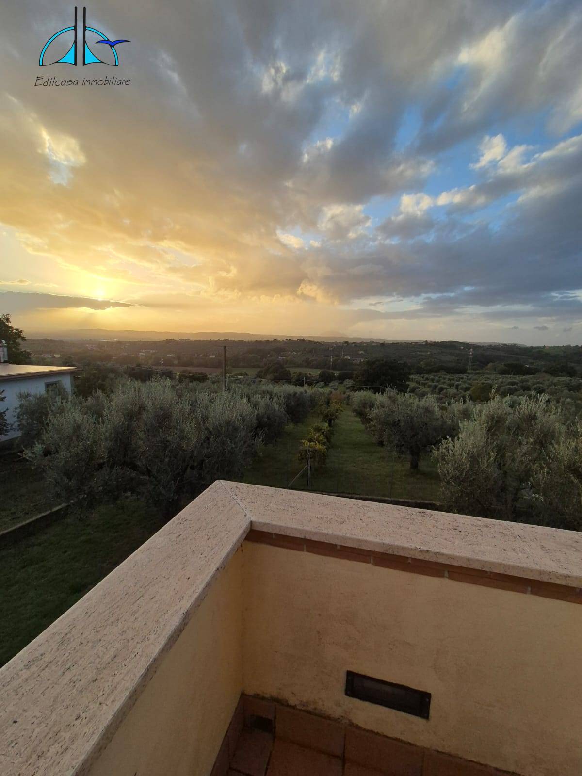 L'immobile circondato da uliveti ed alberi da frutto è composto al piano terra da: ampio e luminoso salone con affaccio su giardino, cucina abitabile, due camere grandi, bagno con vasca idromassaggio e doccia oltre al terrazzo panoramico che circonda quasi tutto il piano.
