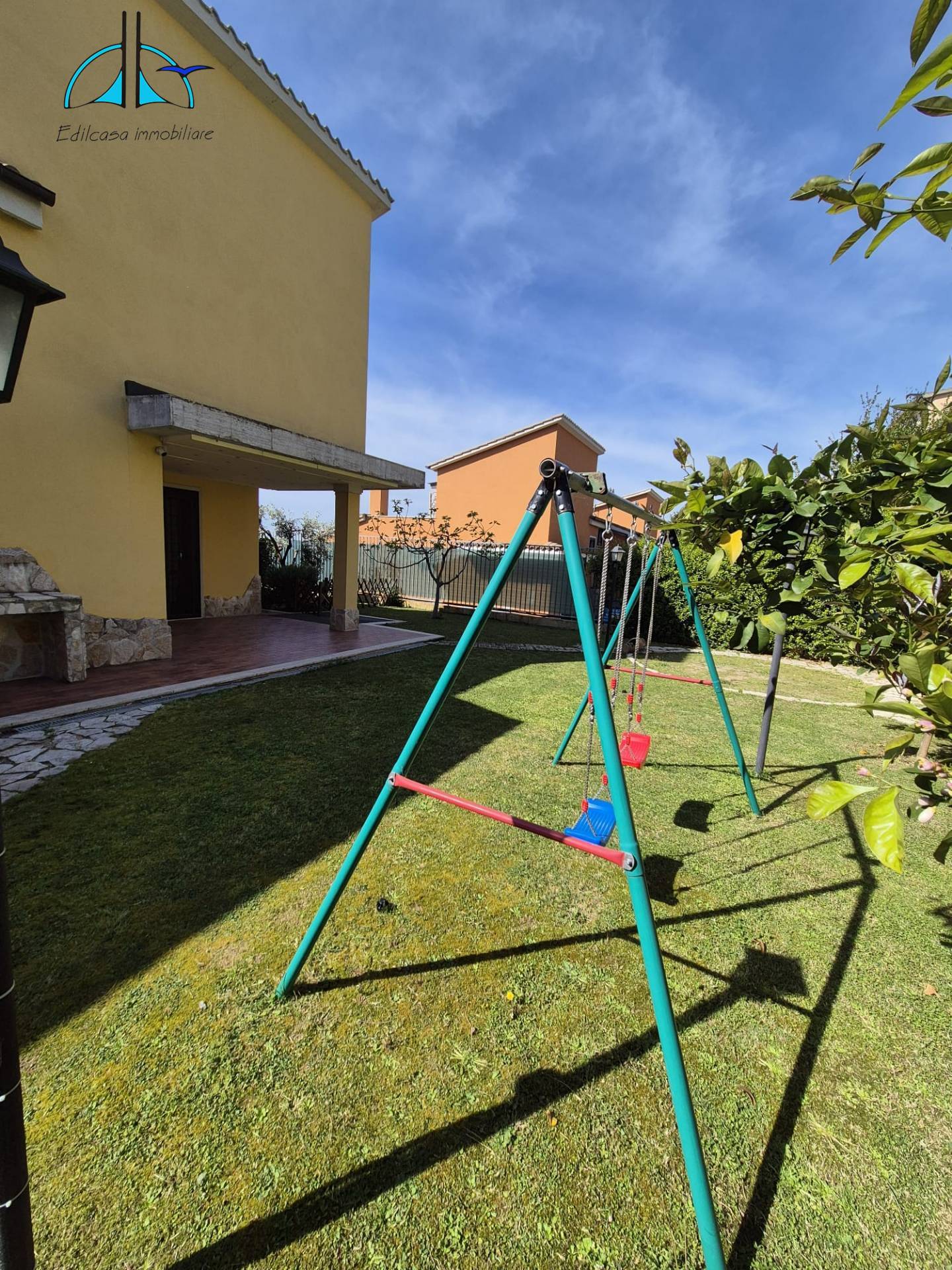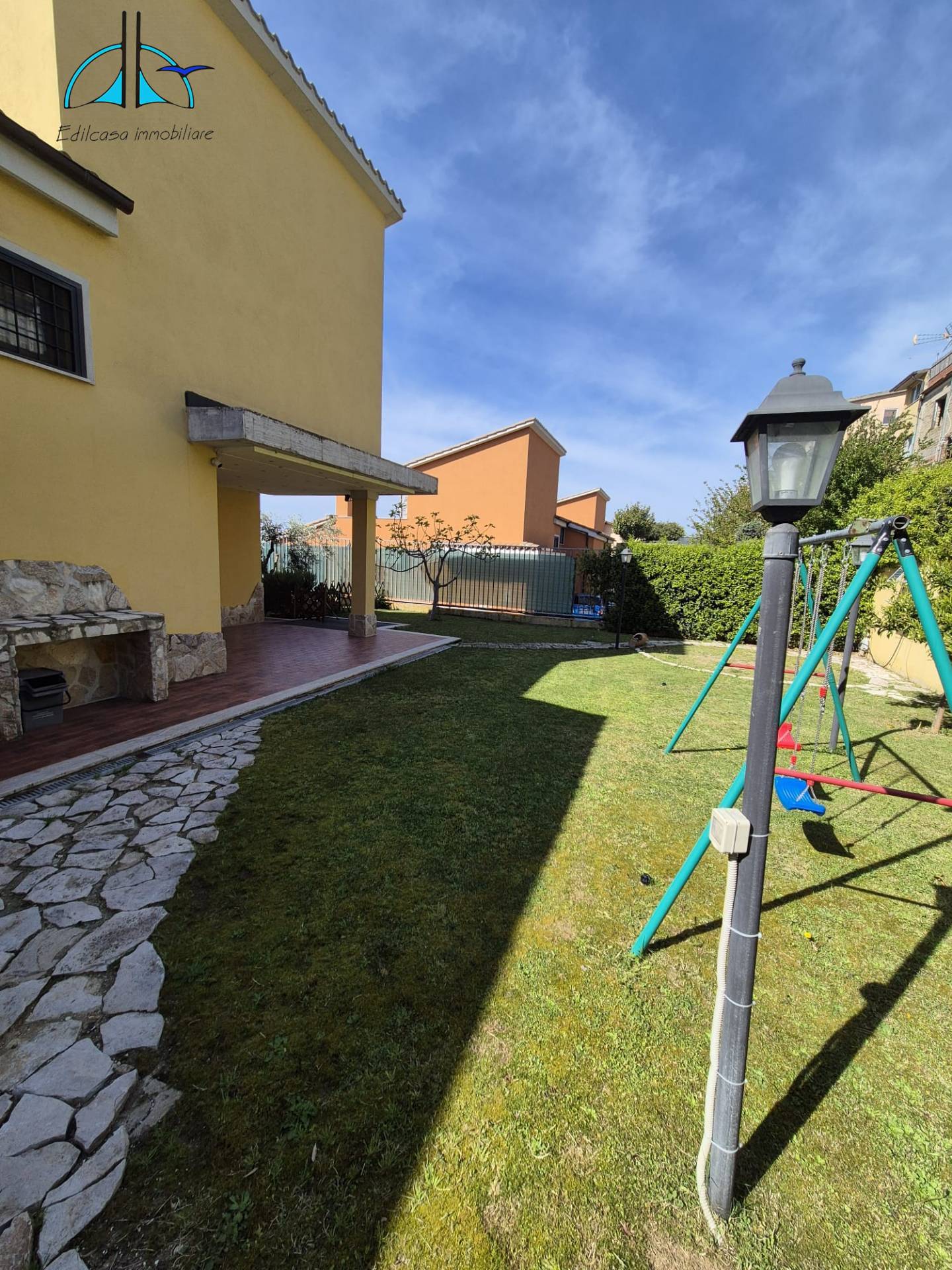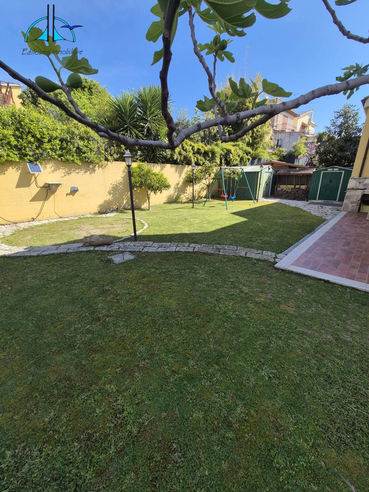 L'immobile disposto su 3 livelli è composto al piena terra da: ampio e luminoso salone con camino ed affaccio su porticato e doppio giardino, cucina abitabile e bagno.