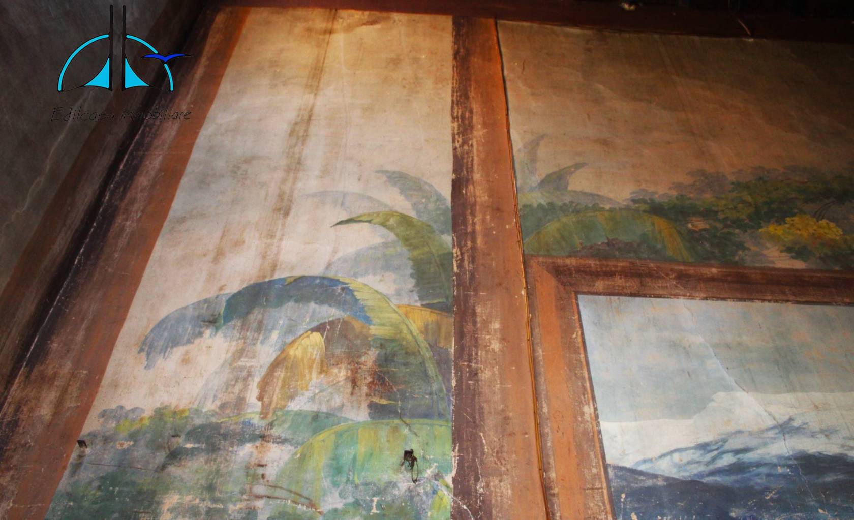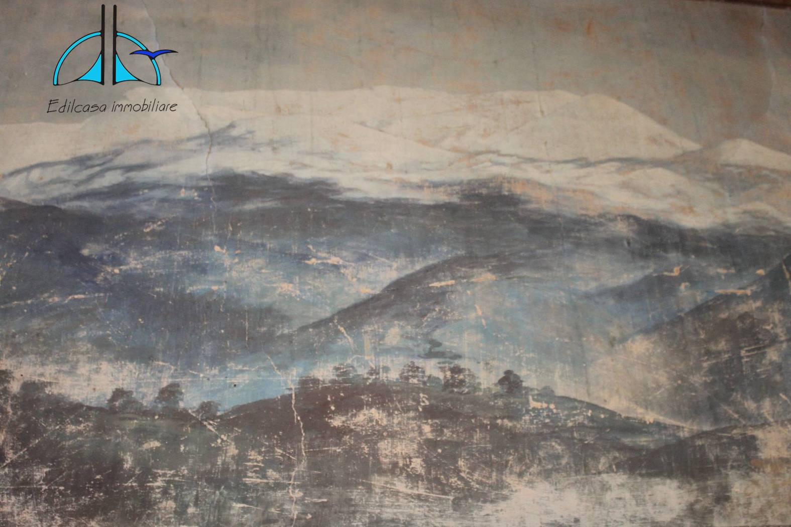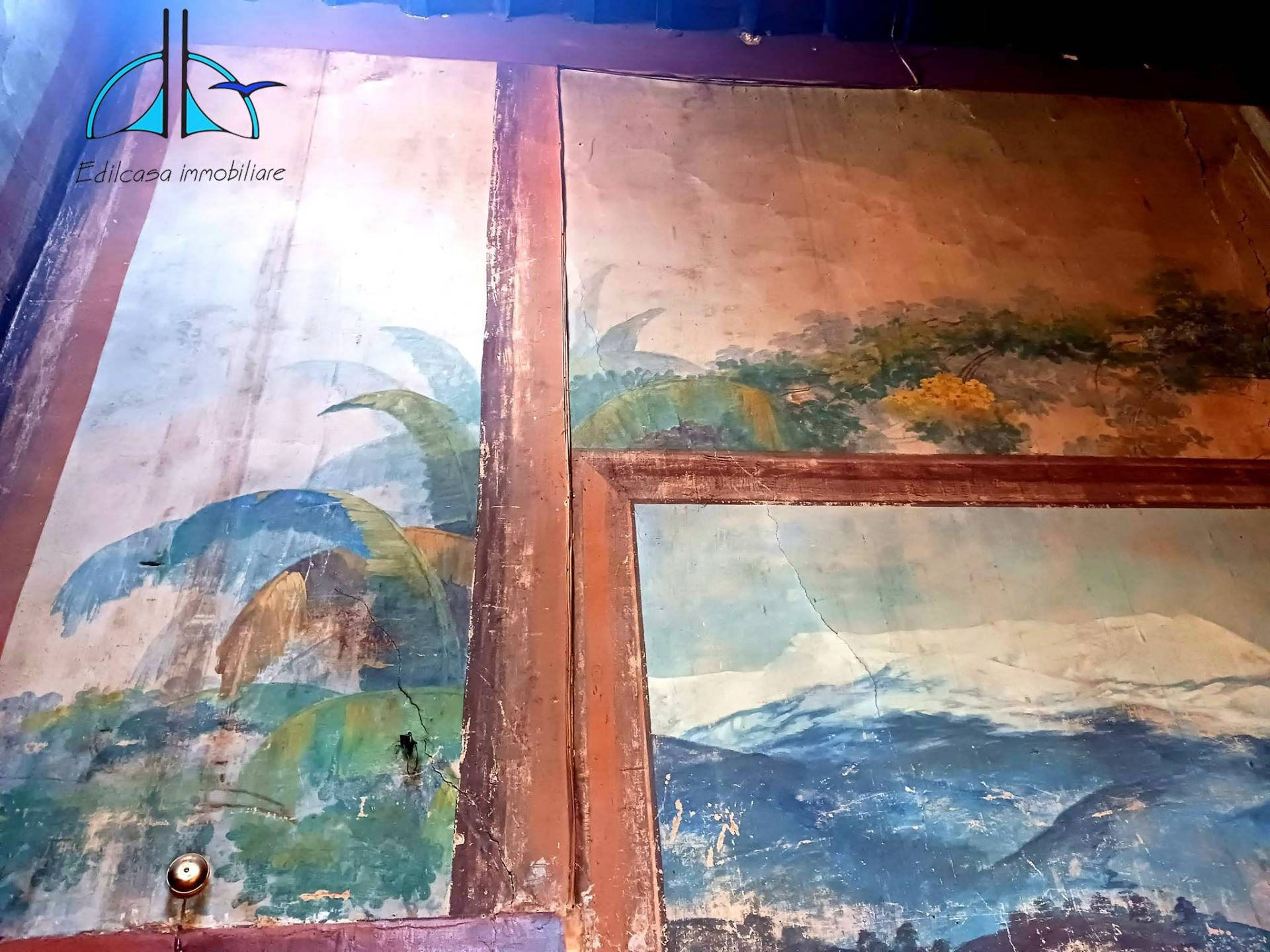 Al piano superiore, di circa 250 m², gli ambienti sono ampi ed il magnifico salone centrale rappresenta il cuore della casa, un luogo perfetto per rilassarsi e godere di piacevoli momenti di convivialità. Le pareti di straordinaria bellezza sono dipinte con affreschi del pittore Antonino Calcagnadoro (1876- 1935) con paesaggi e motivi floreali simili a quelli già eseguiti nel Teatro Flavio Vespasiano di Rieti