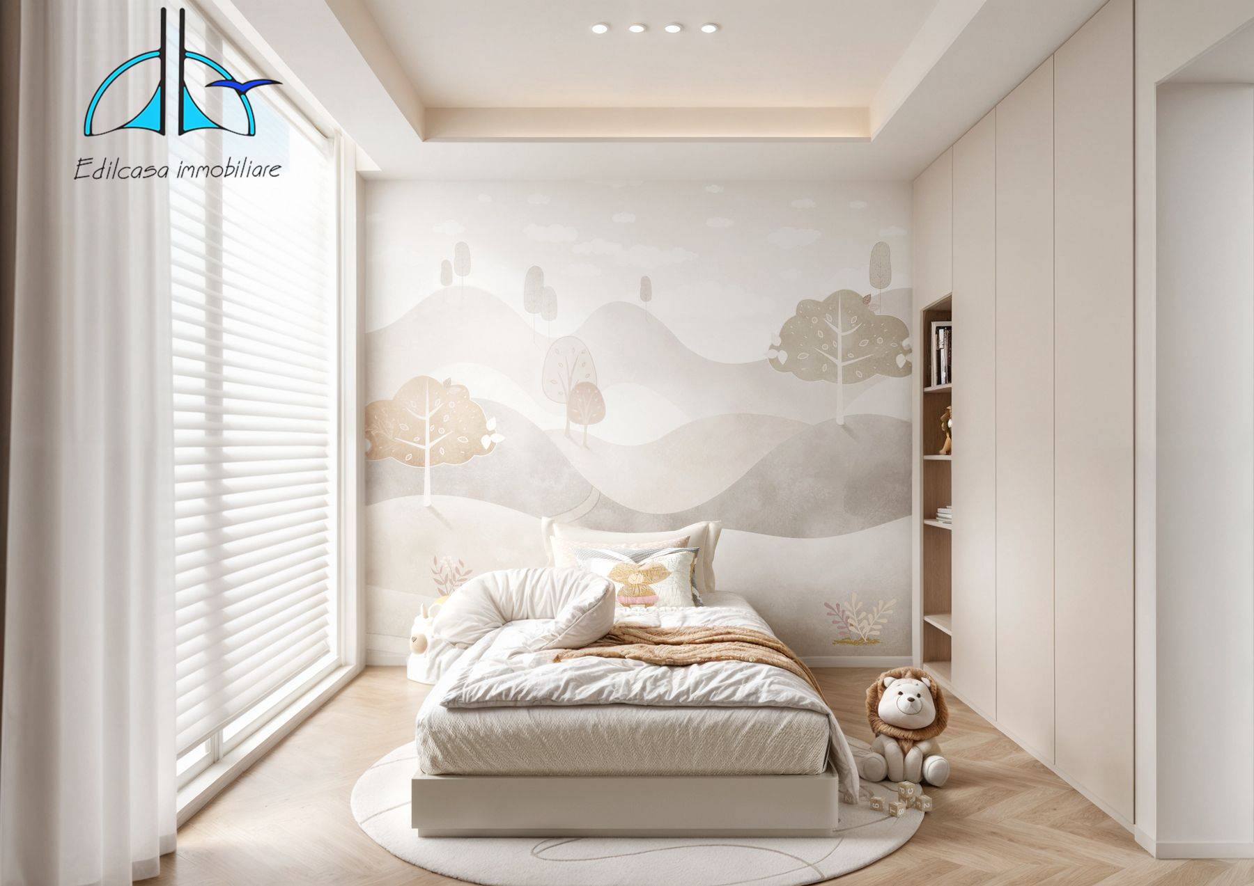 Il trilocale, di circa 87 mq commerciali, si distingue per l’armonia degli spazi e la cura dei dettagli: un luminoso soggiorno con angolo cottura, disimpegno, due camere da letto e bagno.